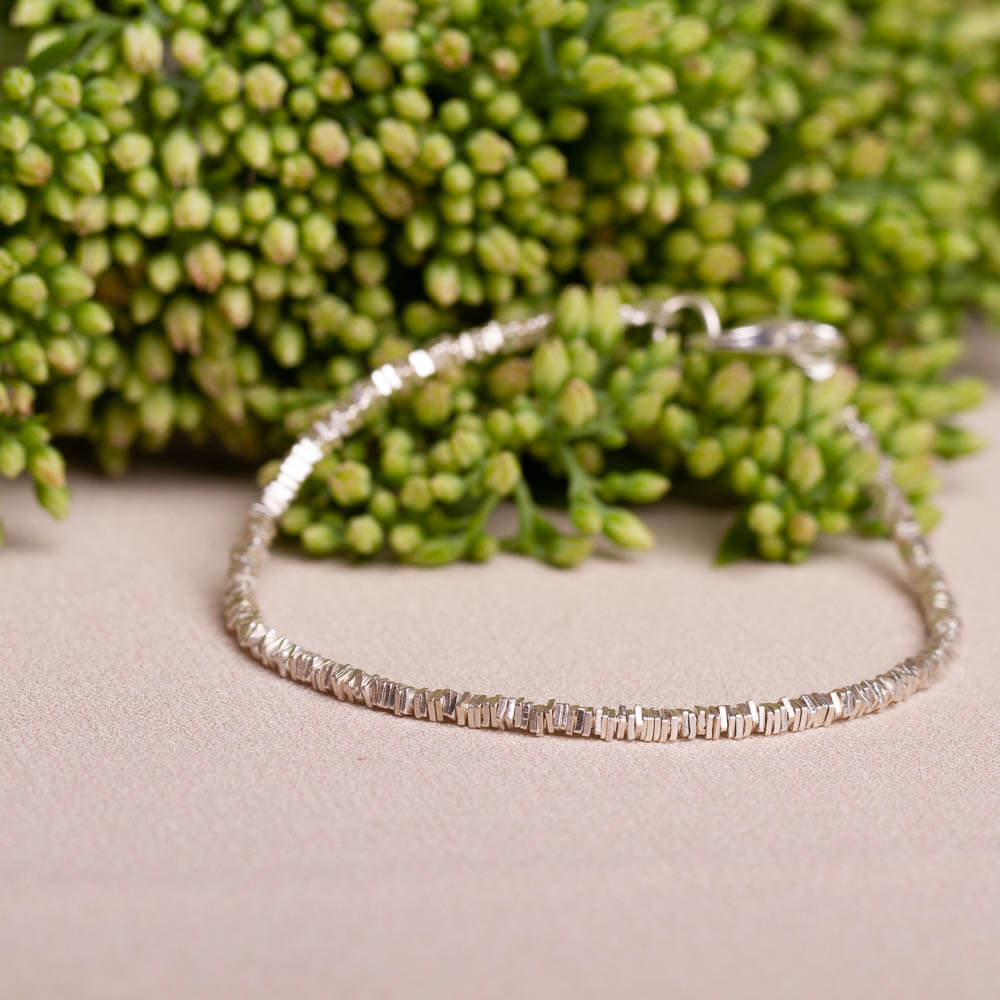 Unser Armband „Quadrate Fein“ überzeugt durch seine Schlichtheit und zeigt doch einen Hauch von Raffinesse. Die kleinen, minimalistischen Quadrate in Kombination mit der dezenten Struktur machen es zu einem perfekten Schmuck für jeden Tag ebenso wie für besondere Anlässe.