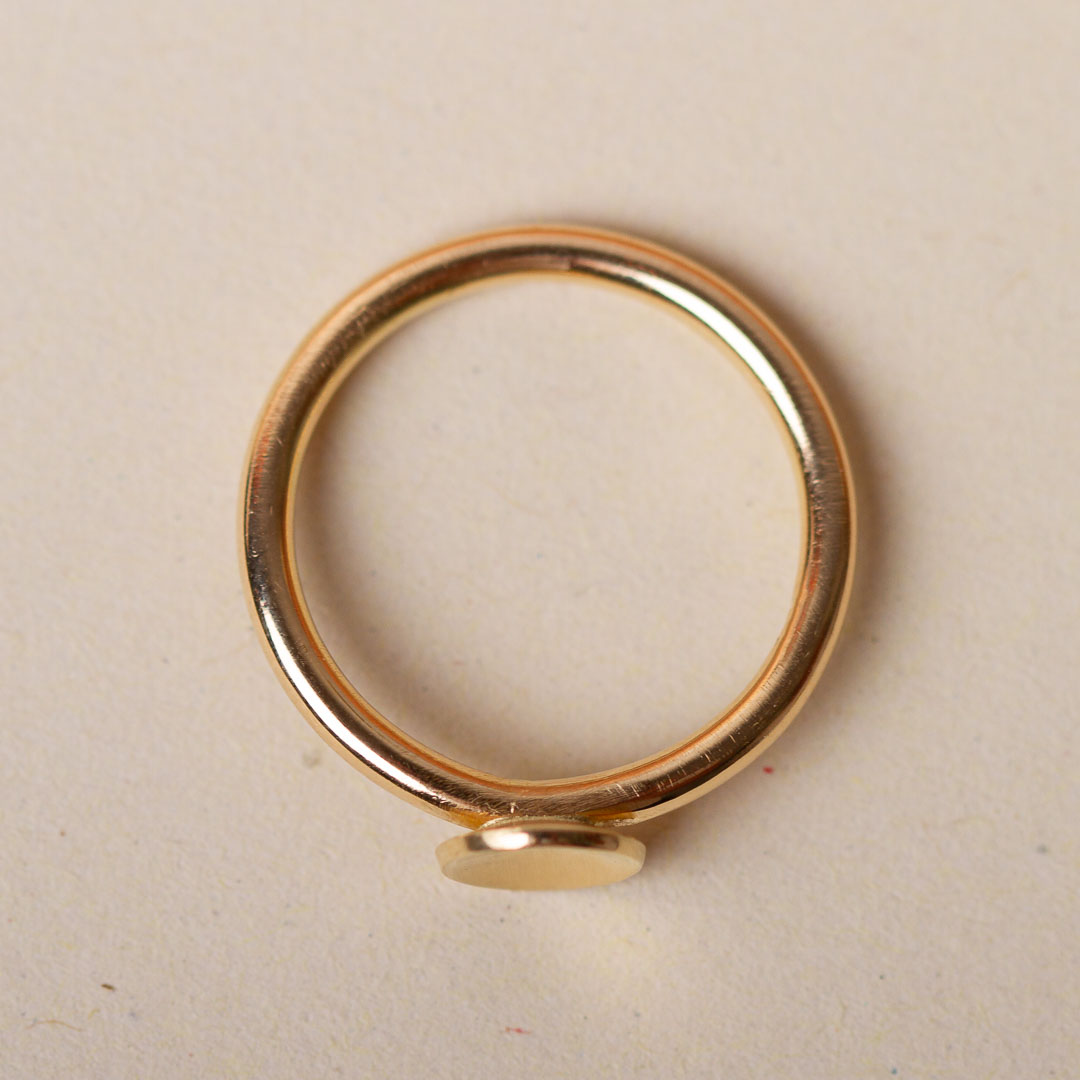 Du legst dich farblich nicht gern fest und Edelsteine sind nicht so dein Ding? Dann ist dieser Ring in 585 Gold genau das was du suchst. Ein schmaler Ring mit einem aufgesetzten getieften Goldplättchen in 585 Gold. Zeitlos und hervorragend geeignet um ihn mit anderen Ringe zu kombinieren und mit deinem Trauring oder anderen Stapelringen zusammen zu tragen.