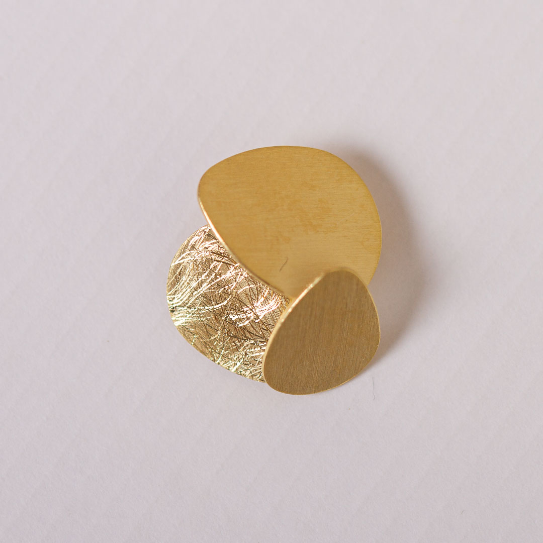 Kettenanhänger aus 585 Gelbgold mit drei leicht dreieckigen Plättchen. Die versteckte Öse für die Kette auf der Rückseite des Schmuckstücks unterstreicht die elegante Wirkung dieses goldenen Kettenanhängers. Die drei Plättchen haben unterschiedliche Oberflächen wie feinmatt oder eismatt. Die Maße des Anhängers sind im Durchmesser ca. 17 x 17 mm.