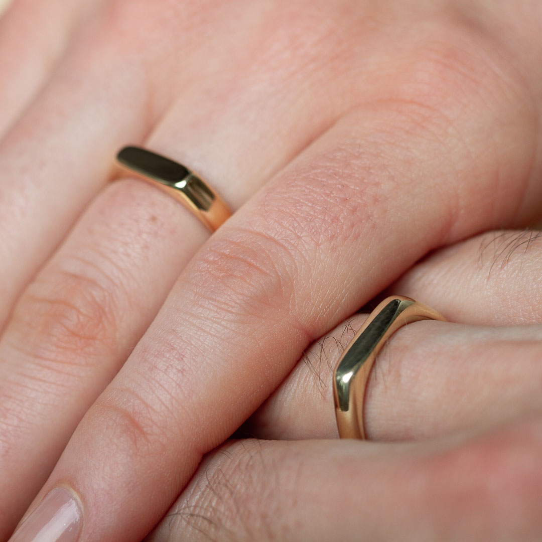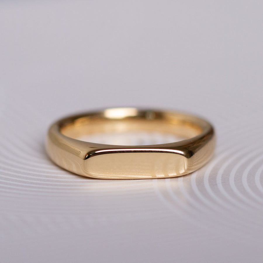 Die 4 mm breite Ringschiene sorgt für ein angenehmes Tragegefühl und eine ausgewogene Präsenz am Finger. Die flache, rechteckige Siegelfläche (12 mm breit und 4 mm hoch) verleiht dem Ring seine charakteristische Form und bietet Platz für individuelle Gravuren – egal ob Initialen, Symbole oder ein besonderes Datum. Auch auf der Innenseite lässt sich eine persönliche Botschaft eingravieren.
