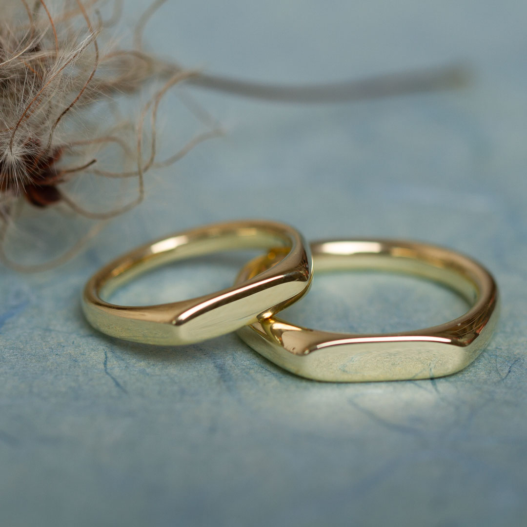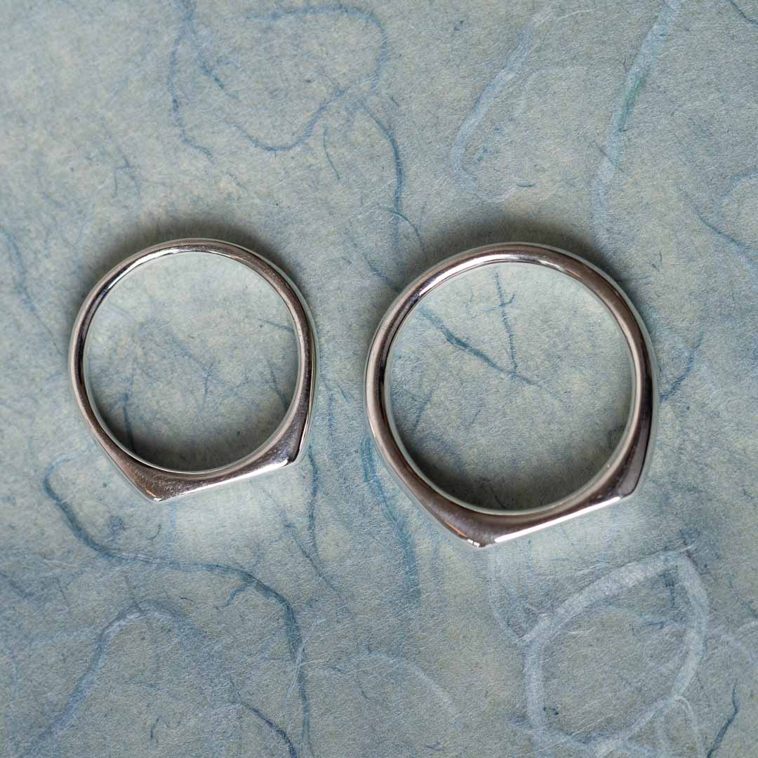 Der Ring wird individuell in der gewünschten Größe und dem von euch bevorzugten Edelmetall angefertigt. Erhältlich ist er in Silber (ab 390 €/Ring) sowie in 585er Gold (ab 990 €/Ring). Weitere Legierungen und Preisinformationen erhaltet ihr bei uns im Schmuckladen in Berlin auf Anfrage. Im Rahmen einer Trauringberatung ist der Siegelring in 585Gelbgold, 585Rotgold oder auch in Weißgold erhältlich. Der Endpreis richtet sich dabei maßgeblich nach der gewünschten Ringgröße, dem aktuellen Goldpreis und dem gewählten Material.