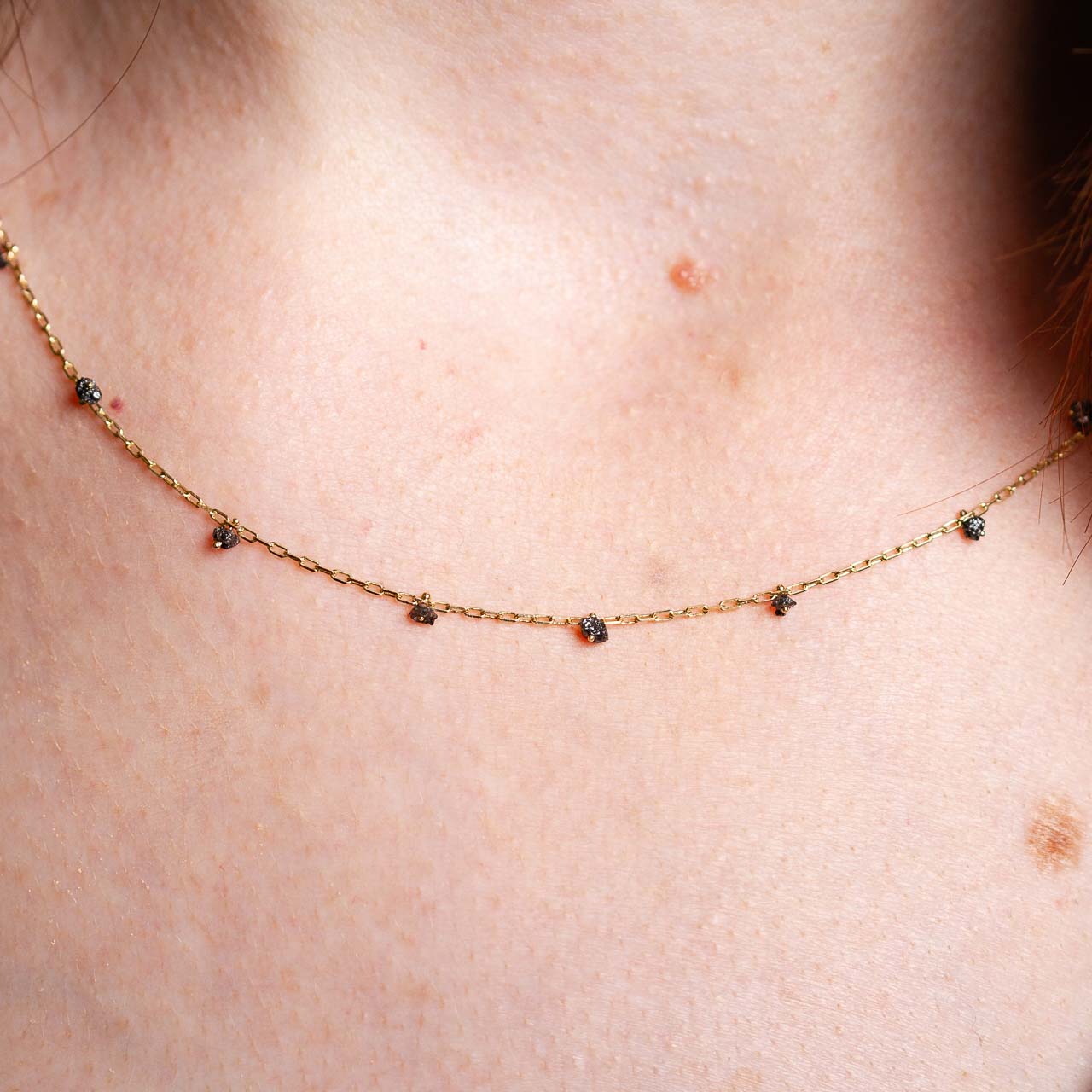 Diese Halskette aus 14 Karat Gelbgold ist mit 16 Rohdiamanten besetzt und in der Länge auf 43 cm oder 46 cm verstellbar.